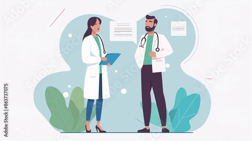 Creative Collaboration: Cartoon Doctors Strategize Patient Care Against Abstract Backdrop, Medical Staff Communicating on Professional Topics with Artistic Flair