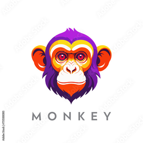 Creative colorful funny monkey mascot logo. Chimpanzee cartoon style, digital vector illustration.