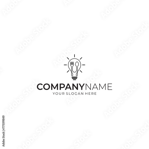 Creative food menu logo. Bulb with spoon and fork for food and restaurant logo