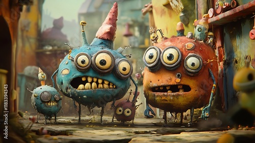 Creative imaginary creatures in a fun 2D animated setting