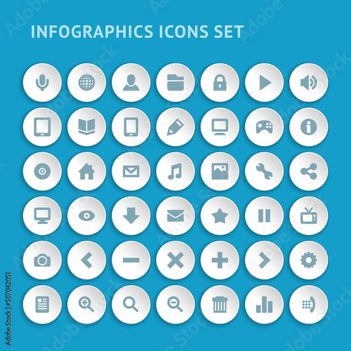 Creative infographics and entertainment vector icons. Blue development management information with optimization user search. Game marketing and renovation social services relationship strategic.