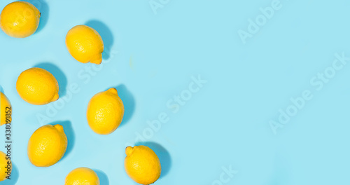 Creative layout made of lemon on green mint color background.