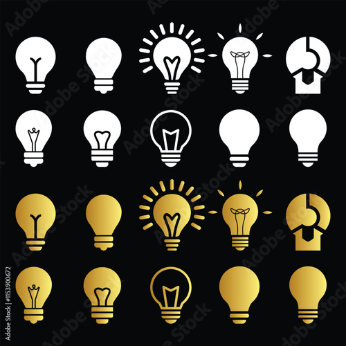 Creative light bulb icon set with modern white and gold designs