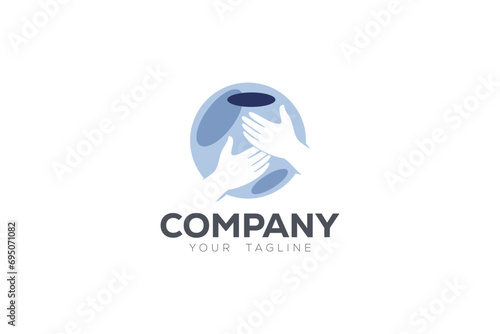 Creative logo design depicting planet earth with two hands holding it.