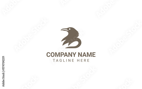 Creative Minimalist Letter B Raven Bird Logo Design Vector Illustration