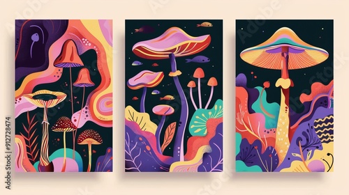 Creative mushroom-themed illustration with vivid hues