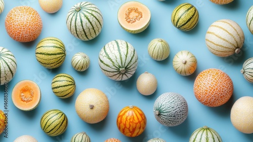 Creative pattern made of melons on pastel blue background illustration , no logos, no brands