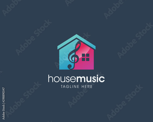 Creative Simple Music House Logo, Music House Studio Logo Design Vector Template