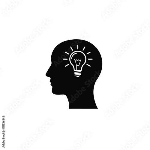 Creative Thinking Concept With Light Bulb In Head Silhouette Graphic Illustration