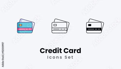 Credit Card Icons thin line and glyph vector icon stock illustration