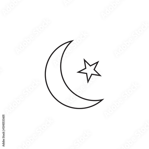 Crescent moon with stars icon on white background. Night icon. Crescent moon icon vector