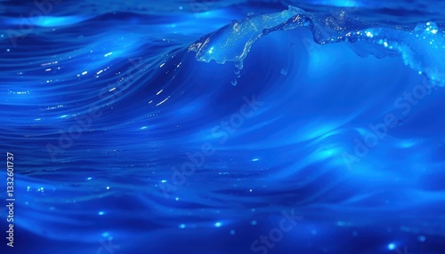 Cresting Ocean Wave, Cobalt Blue Waters, Coastal Scene, Nature Photography, Tranquil Environment, Close-Up View, Bioluminescent Concept