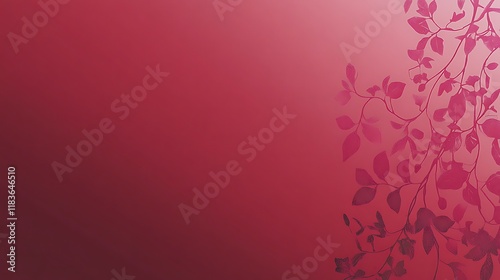 Crimson Background with Delicate Leaf Branch Design