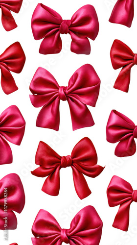 Crimson Bows Array: A vibrant array of elegant crimson bows, meticulously arranged in a seamless pattern. These bows symbolize celebration, gift-giving, and festive occasions.