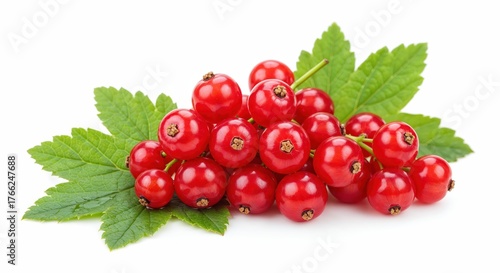 Crimson Jewels: A close-up view unveils a cluster of vibrant red currants, a visual symphony of nature's artistry with their verdant, delicately veined leaves