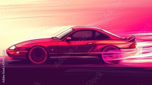Crimson Speed: A Retro-Futuristic Coupe in Motion