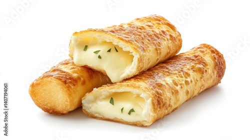 Crispy Cheesy Snack with Melted Cheese Center Served on Bright White Background