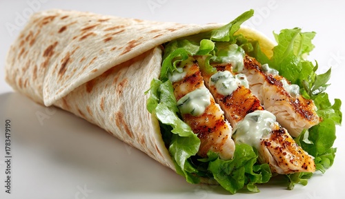 Crispy chicken wrap with lettuce, melted Mozzarella, yellow or honey sauce