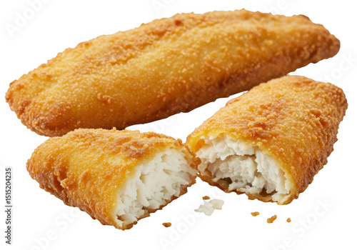 Crispy fried fish fingers isolated on transparent background