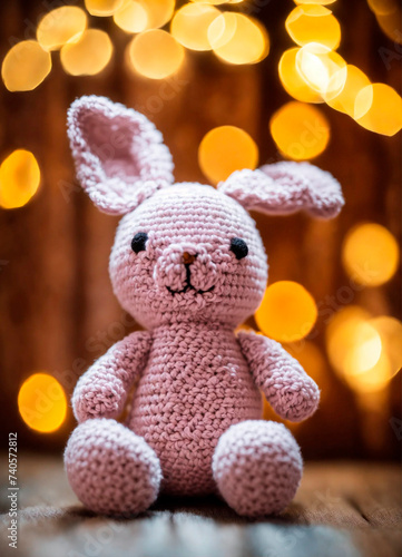 Crochet toy handicraft homemade threads. Selective focus.
