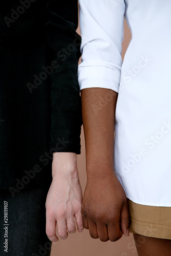 Crop multiracial people near each other