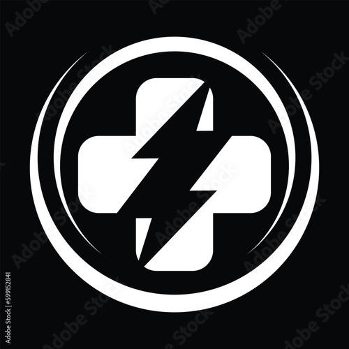 Cross Sign with medical logo health icon design and lightning logo vector illustration graphic design. Flat Vector Logo Design Template Element