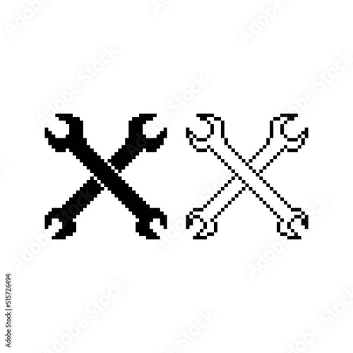 Crossed wrenches vector icon set. Pixel art. 8 bit logo. eps10