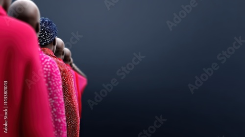 Crowd of individuals dressed in vibrant traditional attire awaiting an event in a dark setting