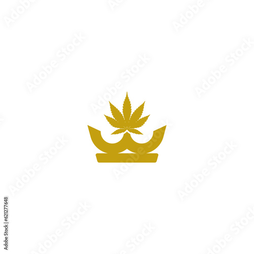 Crown and cannabis logo design isolated on white background