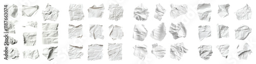 Crumbled paper isolated on transparent background, Set of