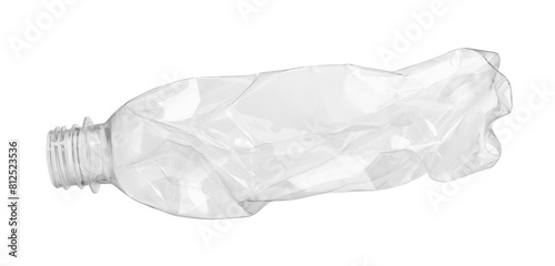 Crumpled disposable plastic bottle isolated on white
