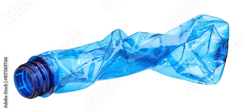 Crumpled disposable plastic bottle isolated on white