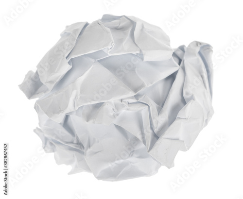 Crumpled paper boll isolated on white background clipping path. Screwed up piece of paper