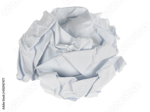 Crumpled paper boll isolated on white background clipping path. Screwed up piece of paper