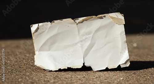 Crumpled Sheet of Paper on Rough Surface Under Sunlight