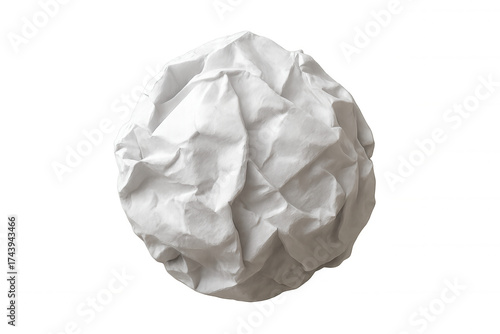 Crumpled white paper ball representing mistakes, waste, and creative blocks, isolated on transparent background