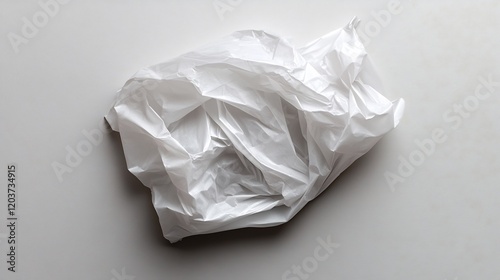 Crumpled White Plastic Bag on Light Gray Background Studio Shot Minimalist