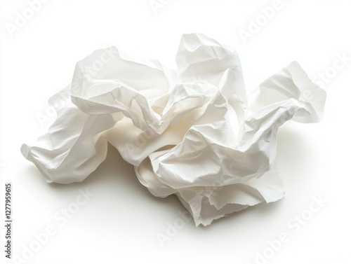 Crumpled white tissue paper on a clean white surface in bright studio light creating soft shadows abstract texture close up