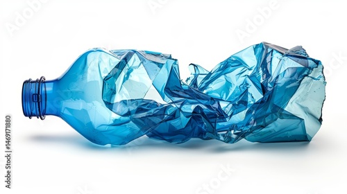 Crushed Blue Plastic Bottle on White Background