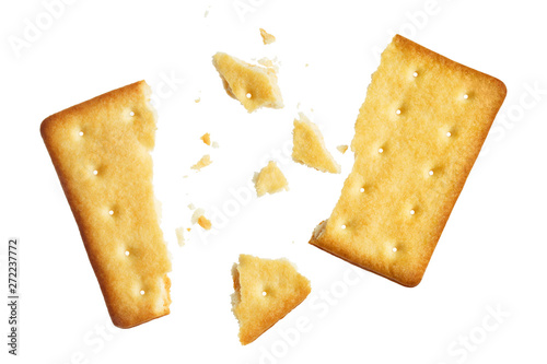 Crushed dry cracker, isolated on white background