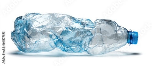 Crushed plastic water bottle on white background