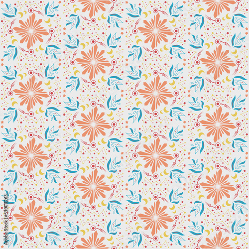 Crystal Star Moon Seamless Pattern Background Nature Plant Damask Art
