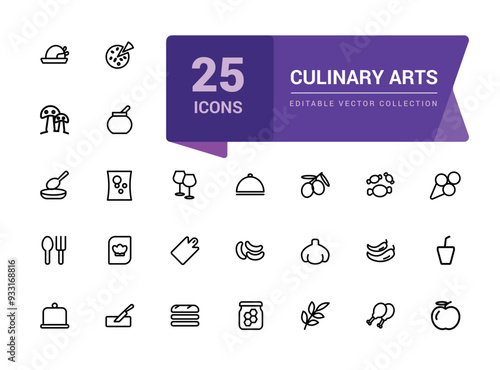 Culinary Arts and Cooking icon pack. Related to Frying, boiling, baking and ready to eat. Minimalist thin linear web ui icon set. Simple editable vector stroke illustration.