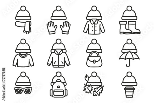 Cup icons icon sweater bag hat backpack gloves autumn sunglasses vector