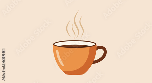 Cup Of Joe Steaming brown coffee in a gold cup with brown handle on a tan background