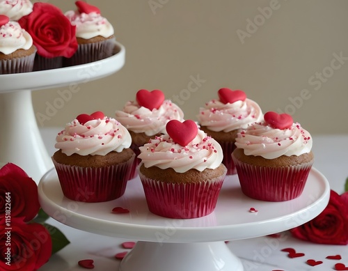 cupcake with pink frosting in the decorated room valentine's day wedding anniversary and birth day party celebration concept