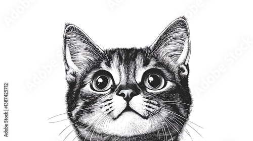 Curious Kitten with Black White Portrait.