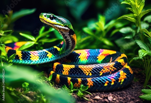 curious snake slithering through lush aromatic herb garden, green, serpent, crawling, foliage, fragrant, reptile, exploring, outdoor, scented, herbage