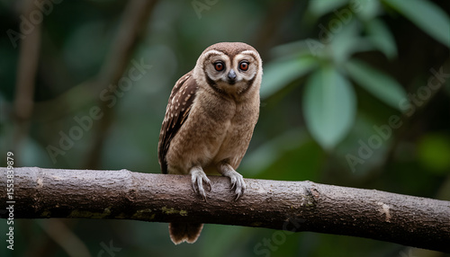 Curious Spectacled Owl Perched on Tree Branch