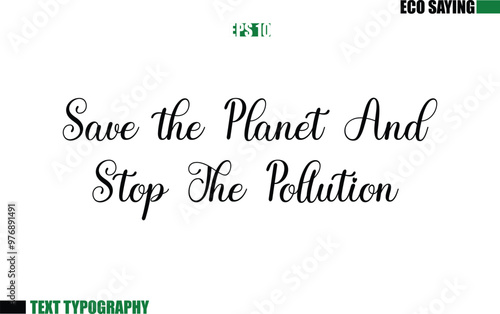 Cursive Text Lettering Eco Quote Save the Planet And Stop The Pollution